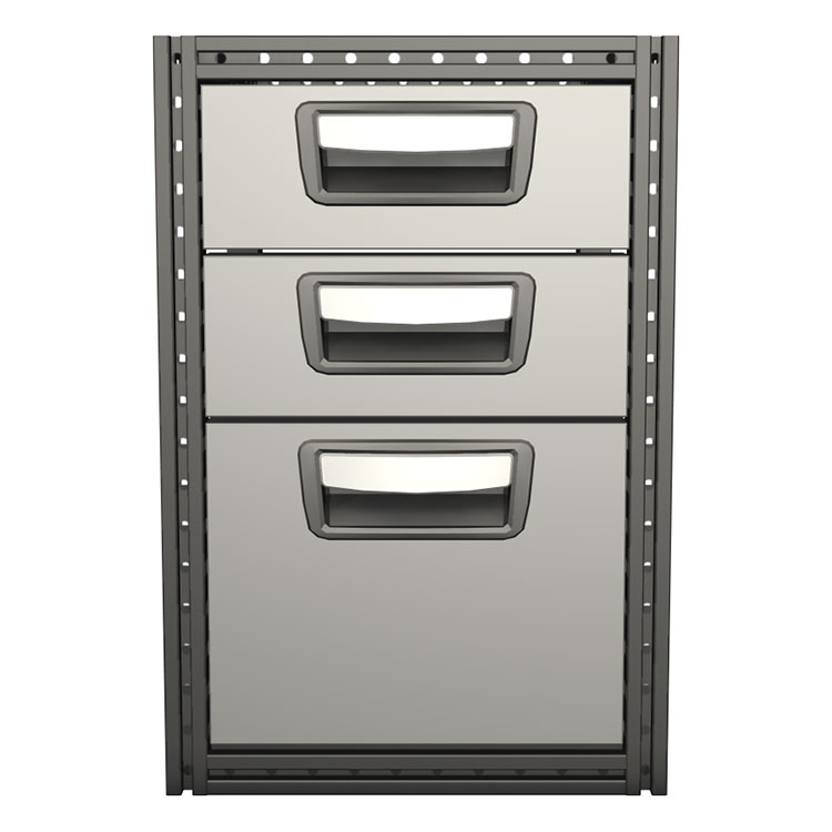 Zásuvkové díly jsou modulární v šířce, hloubce a výšce a lze je snadno kombinovat s dalšími výrobky v sortimentu. Integrované prvky rámu T-track lze použít pro zajištění nákladu, uchycení příslušenství a pro všestrannou montáž na povrchu. Každá zásuvka je standardně vybavena pojezdy s kuličkovými ložisky. Zásuvky jsou plně rozkládací a vybavené zarážkami. Hmotnost lze optimalizovat pomocí volitelných krycích panelů a nástrojových desek.