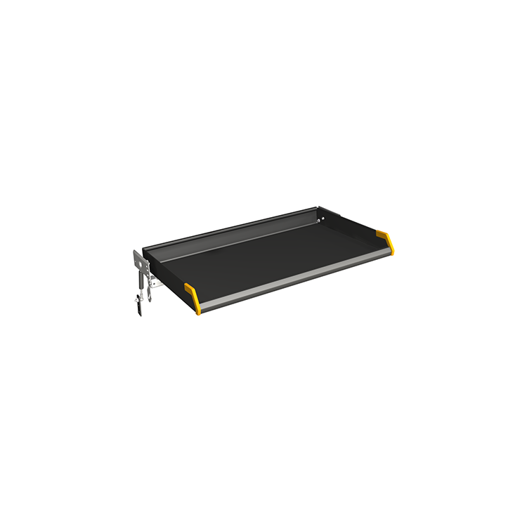 The folding shelves are available in several lengths to fit different vehicle models perfectly. To make them easy to operate, the shelves are equipped with gas struts as standard. The design with higher side and rear edges means packages stay securely on the shelves when the vehicle is being driven. The lower, specially designed, front edge facilitates unloading. Each shelf has a load capacity of 120 kg, and can be mounted with an incline if required.