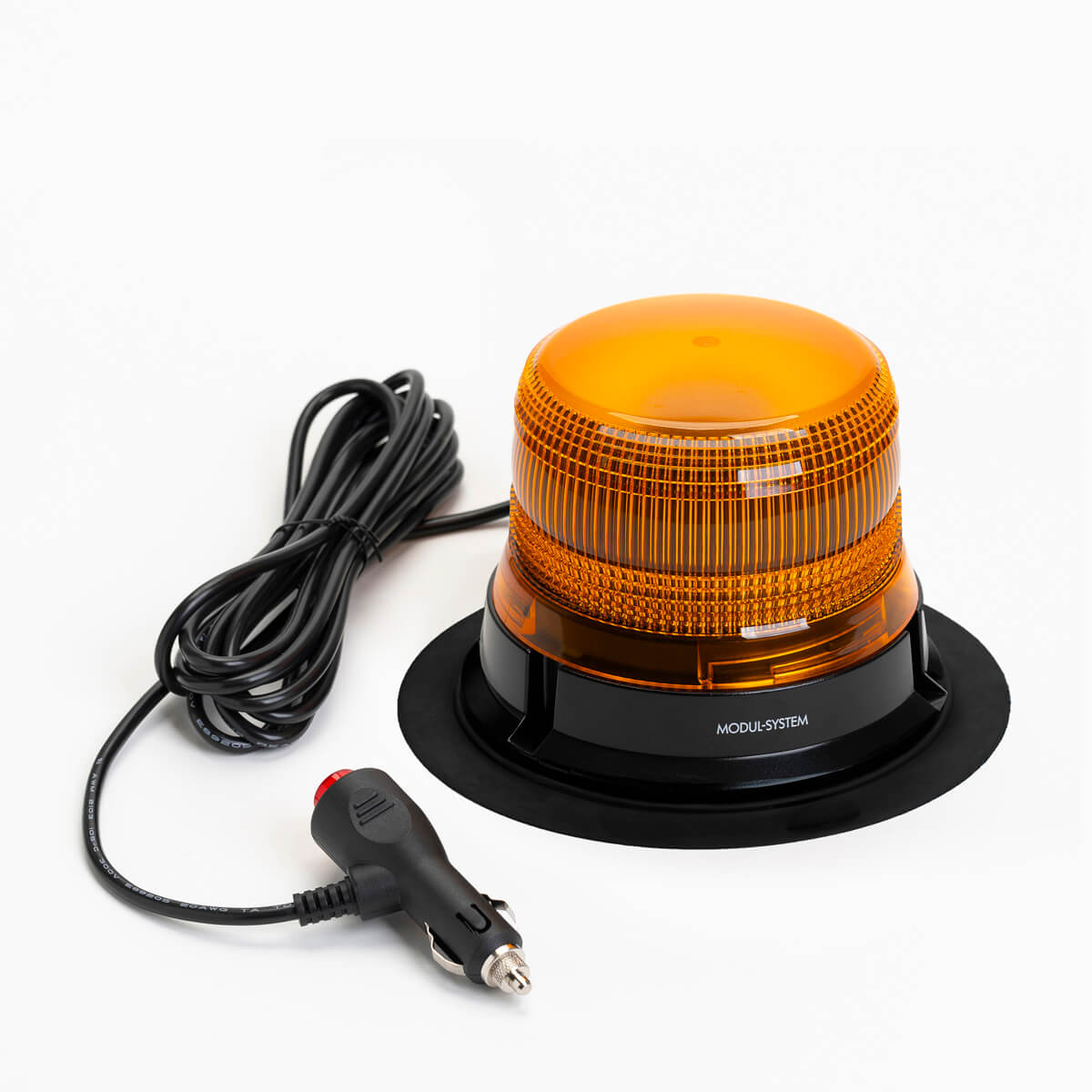 Premium LED beacon with magnetic base for temporary stationary installation. The beacon is powered via the fitted lead and cigar power plug.