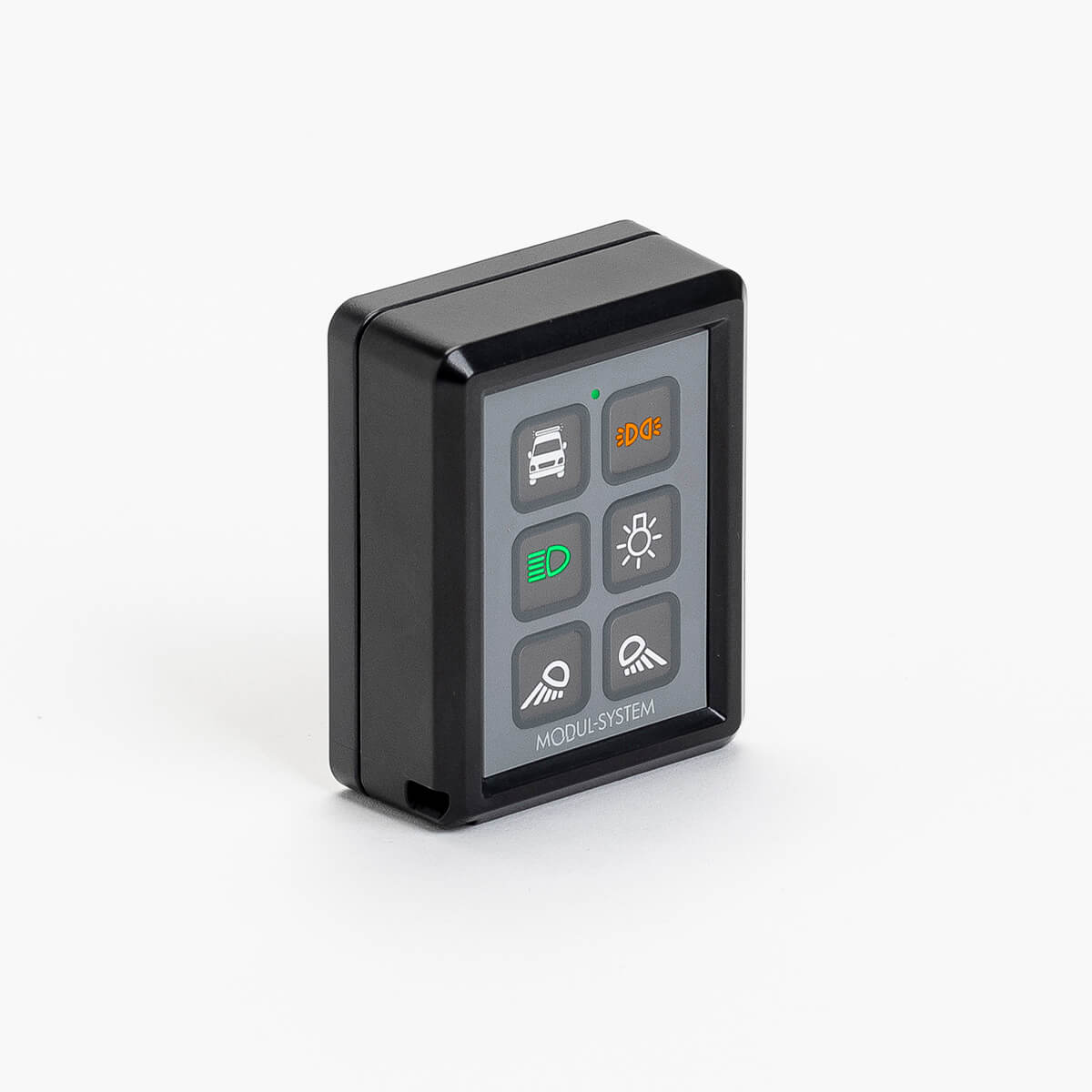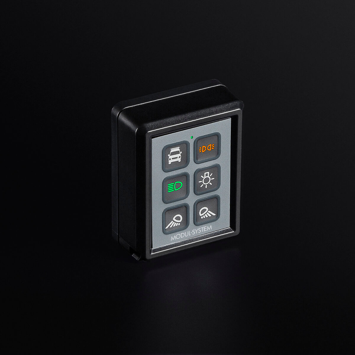 Podsvícený řídicí panel navržený tak, aby se vešel do kabiny nebo nákladového prostoru vozidla. Podsvícené spínače umožňují uživateli snadno zjistit, jaké příslušenství je zapnuto. Po instalaci je možné se rozhodnout mezi zelenými nebo oranžovými symboly.