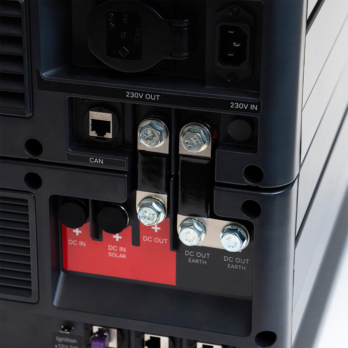 Note: When connecting an e-Inverter 2000, the e-Power’s internal fuse size requires replacing the positive busbar with a 200A MEGA fuse to ensure proper protection.