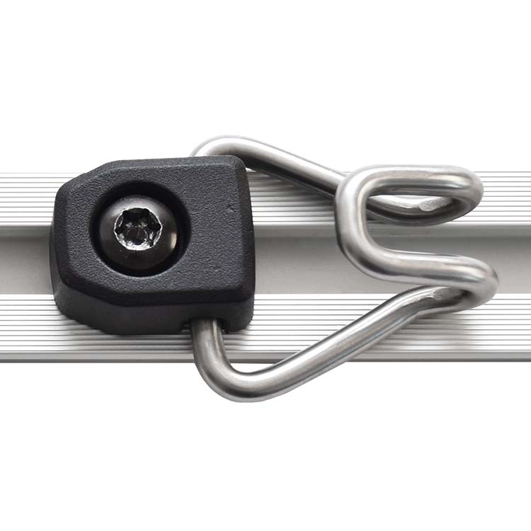Příslušenství, jako jsou vázací očka, vázací háky a nákladové tyče, lze snadno instalovat přímo do kolejnic podlahy.