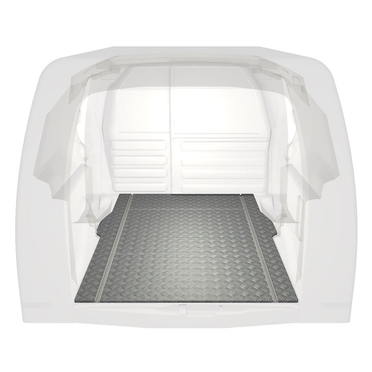 Lehká a robustní standardní podlaha do dodávky Citroën Berlingo / Peugeot Partner s protiskluzovou hliníkovou deskou a nákladními kolejnicemi (podélnými) pro rychlou a bezpečnou montáž regálových systémů a dalšího příslušenství.