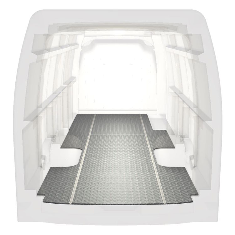 Lehká a robustní extra dlouhá podlaha pro dodávky Renault Master / Opel Movano / Nissan NV400 s protiskluzovou hliníkovou deskou a nákladními kolejnicemi (podélnými) pro rychlou a bezpečnou montáž regálových systémů a dalšího příslušenství.