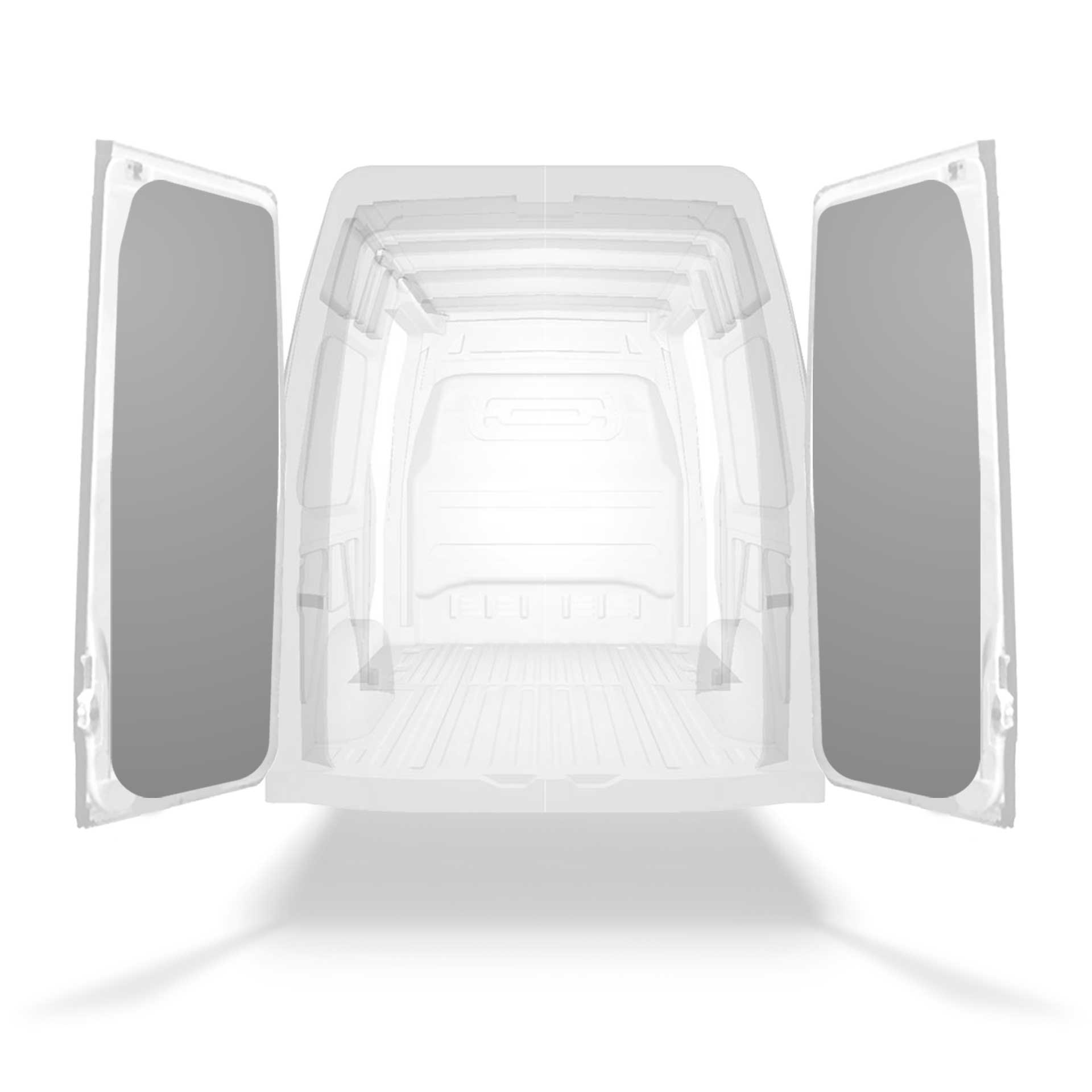 Kompletní obložení zadních dveří dodávek Mercedes Sprinter s dvoukřídlými dveřmi. Obložení dveří vytváří profesionální vzhled uvnitř vozidla, chrání jej a snadno se čistí.