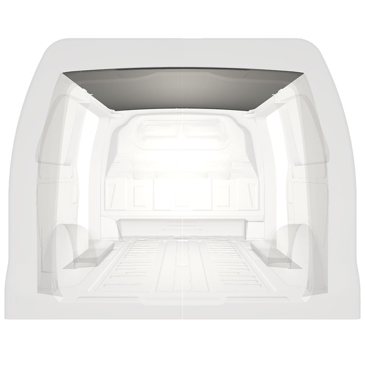 Lehké střešní obložení dodávek Mercedes Vito. Střešní obložení dodává vnitřnímu prostoru profesionální vzhled a vytváří příjemné pracovní prostředí.