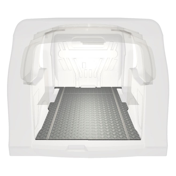 Lehká a robustní extra dlouhá podlaha pro dodávky Ford Transit Connect s protiskluzovou hliníkovou deskou a nákladními kolejnicemi (podélnými) pro rychlou a bezpečnou montáž regálových systémů a dalšího příslušenství.