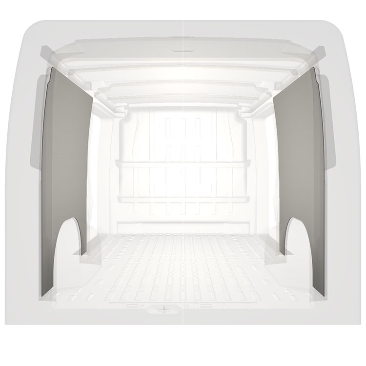 Lehké kompletní obložení vnitřních stěn dodávek Citroën Jumper / Peugeot Boxer / Fiat Ducato s dvojitými bočními dveřmi. Panelové obložení vytváří světlé a příjemné pracovní prostředí a snadno se čistí.