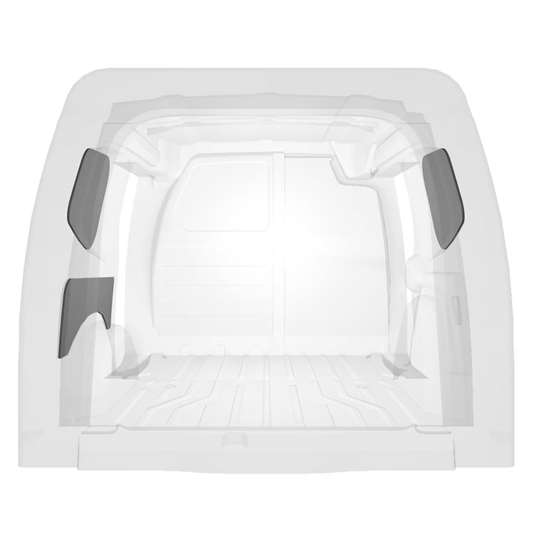 Lehké obložení panelů pro vnitřní stěny dodávek Mercedes Citan / Renault Kangoo 21- s dvojitými bočními dveřmi. Panelové obložení vytváří světlé a příjemné pracovní prostředí a snadno se čistí.