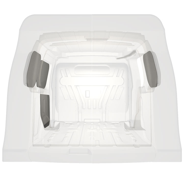 Za účelem optimalizace hmotnosti jsou k dispozici předem nařezané obklady, které se vejdou mezi nosníky ve vozidle, jsou neinvazivní a maximalizují prostor.