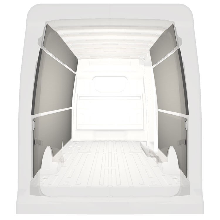 Za účelem optimalizace hmotnosti jsou k dispozici předem nařezané obklady, které se vejdou mezi nosníky ve vozidle, jsou neinvazivní a maximalizují prostor.