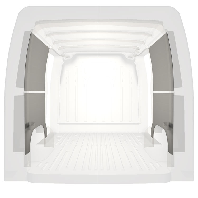 Za účelem optimalizace hmotnosti jsou k dispozici předem nařezané obklady, které se vejdou mezi nosníky ve vozidle, jsou neinvazivní a maximalizují prostor.