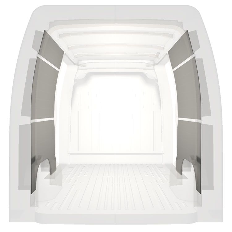 Za účelem optimalizace hmotnosti jsou k dispozici předem nařezané obklady, které se vejdou mezi nosníky ve vozidle, jsou neinvazivní a maximalizují prostor.