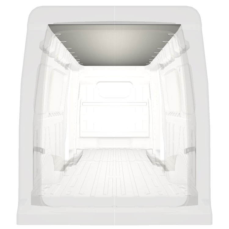Lehké střešní obložení dodávek Volkswagen Crafter / MAN TGE . Střešní obložení dodává vnitřnímu prostoru profesionální vzhled a vytváří příjemné pracovní prostředí.