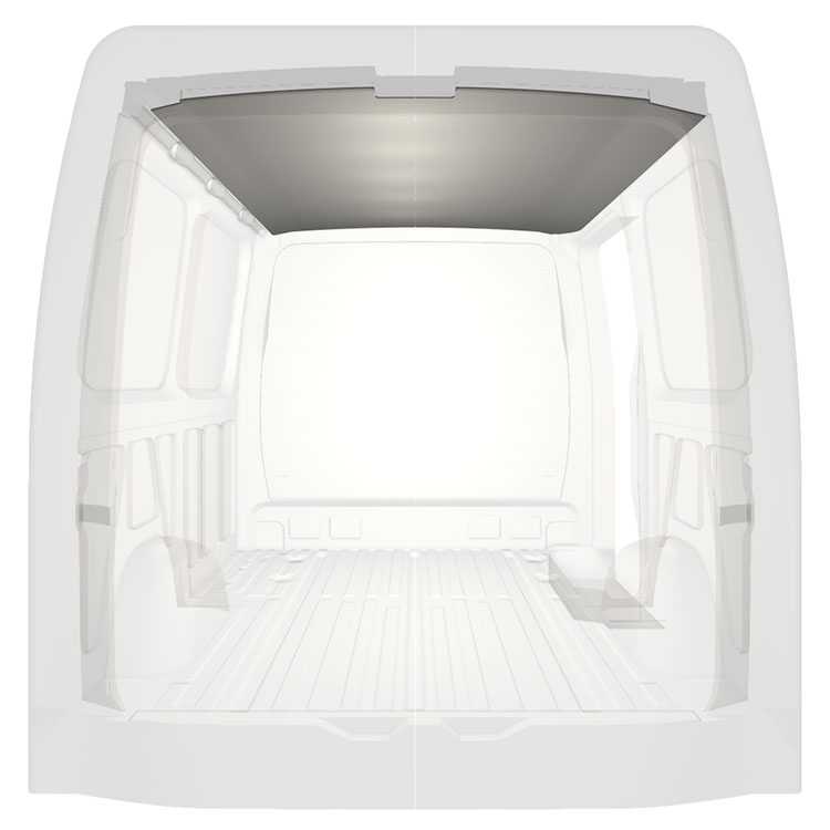 Lehké střešní obložení dodávek Mercedes Sprinter. Střešní obložení dodává vnitřnímu prostoru profesionální vzhled a vytváří příjemné pracovní prostředí.