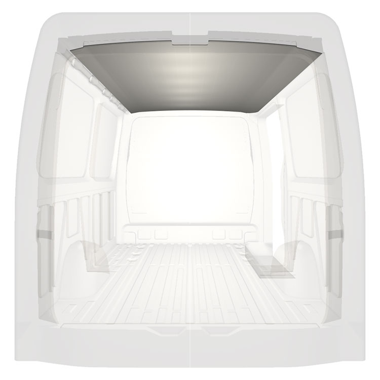 Lehké střešní obložení dodávek Mercedes Sprinter. Střešní obložení dodává vnitřnímu prostoru profesionální vzhled a vytváří příjemné pracovní prostředí.