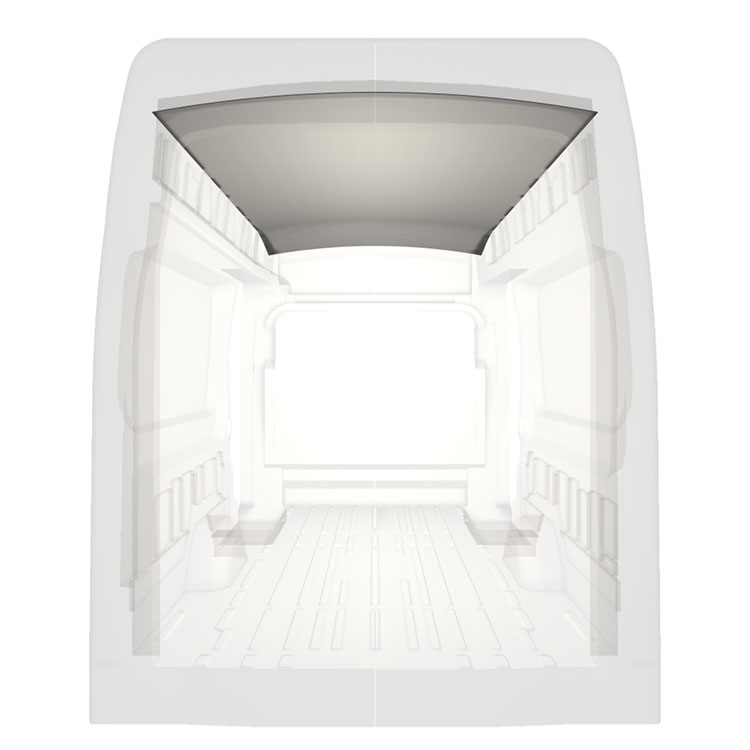 Lehké střešní obložení dodávek Ford Transit. Střešní obložení dodává vnitřnímu prostoru profesionální vzhled a vytváří příjemné pracovní prostředí.