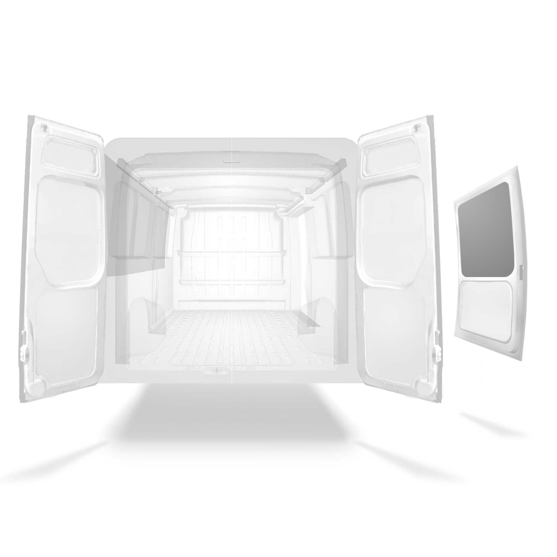 Lehké obložení horní části bočních dveří dodávek Citroën Jumper / Peugeot Boxer / Fiat Ducato s bočními dveřmi napravo. Obložení snižuje opotřebení interiéru a pomáhá nesnižovat zůstatkovou hodnotu vozu.