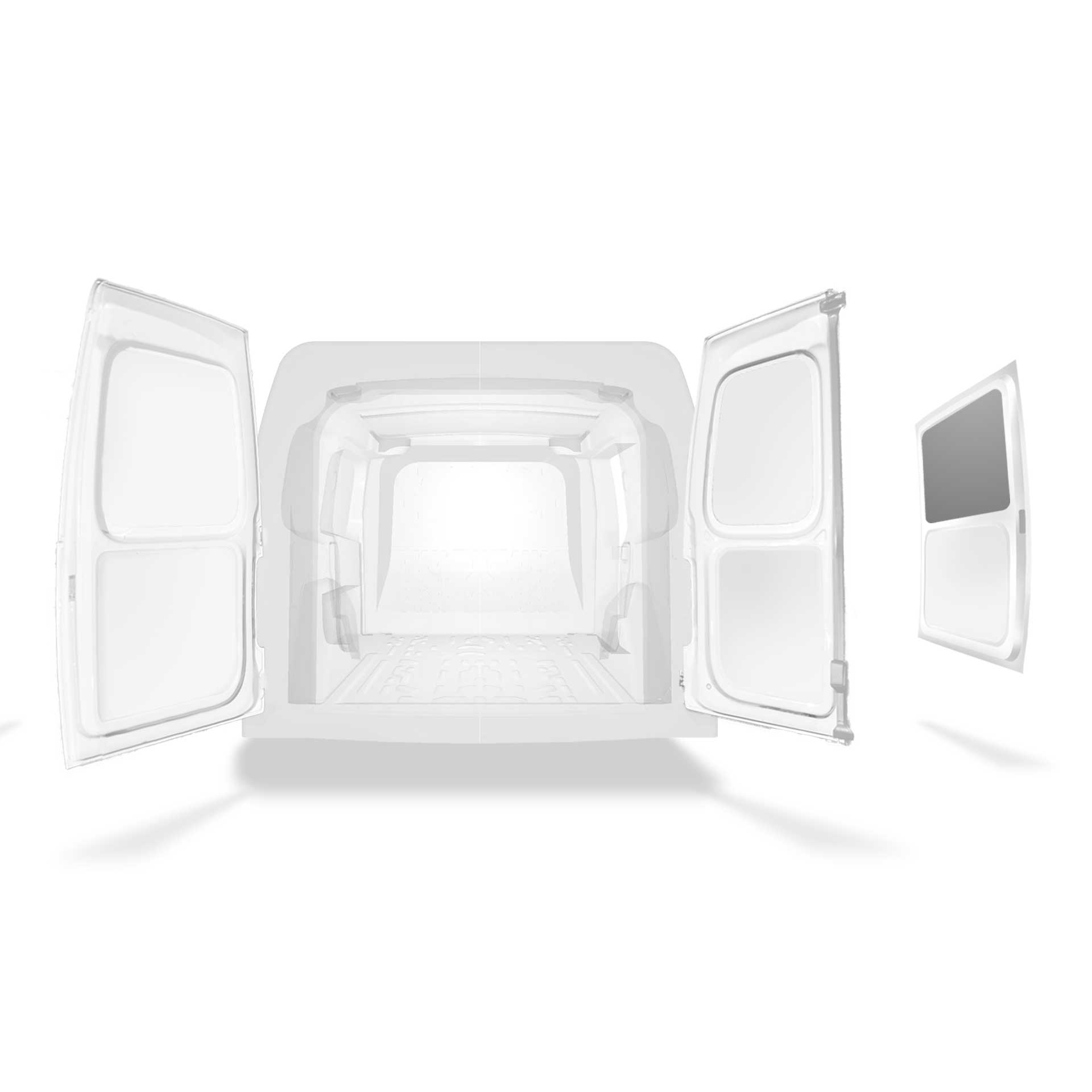 Lehké obložení horní části bočních dveří dodávek Opel Combo / Fiat Doblò s bočními dveřmi napravo. Obložení snižuje opotřebení interiéru a pomáhá nesnižovat zůstatkovou hodnotu vozu.