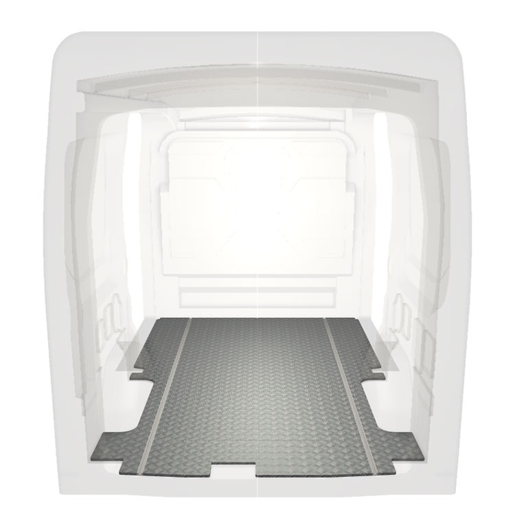 Lehká a robustní extra dlouhá podlaha pro dodávky Ford Transit s protiskluzovou hliníkovou deskou a nákladními kolejnicemi (podélnými) pro rychlou a bezpečnou montáž regálových systémů a dalšího příslušenství.