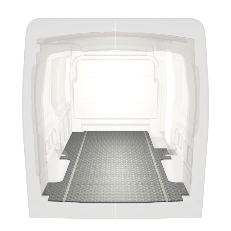 Lehká a robustní extra dlouhá podlaha pro dodávky Ford Transit s protiskluzovou hliníkovou deskou a nákladními kolejnicemi (podélnými) pro rychlou a bezpečnou montáž regálových systémů a dalšího příslušenství.