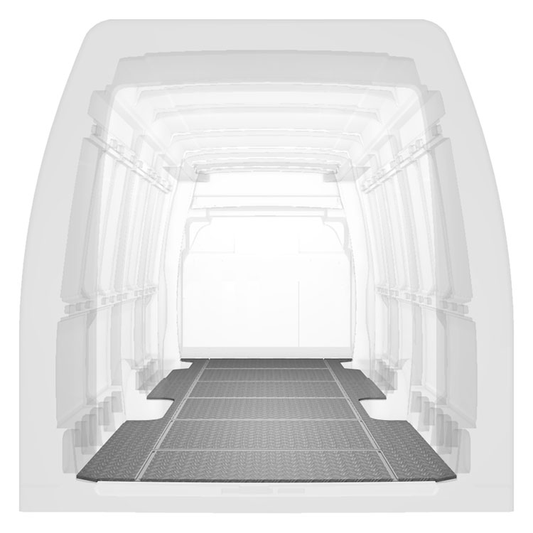 Lehká a robustní podlaha s příčnými kolejnicemi pro dodávky Iveco Daily s protiskluzovou hliníkovou deskou a nákladními kolejnicemi (podélnými a příčnými) pro rychlou a bezpečnou montáž regálových systémů a dalšího příslušenství.