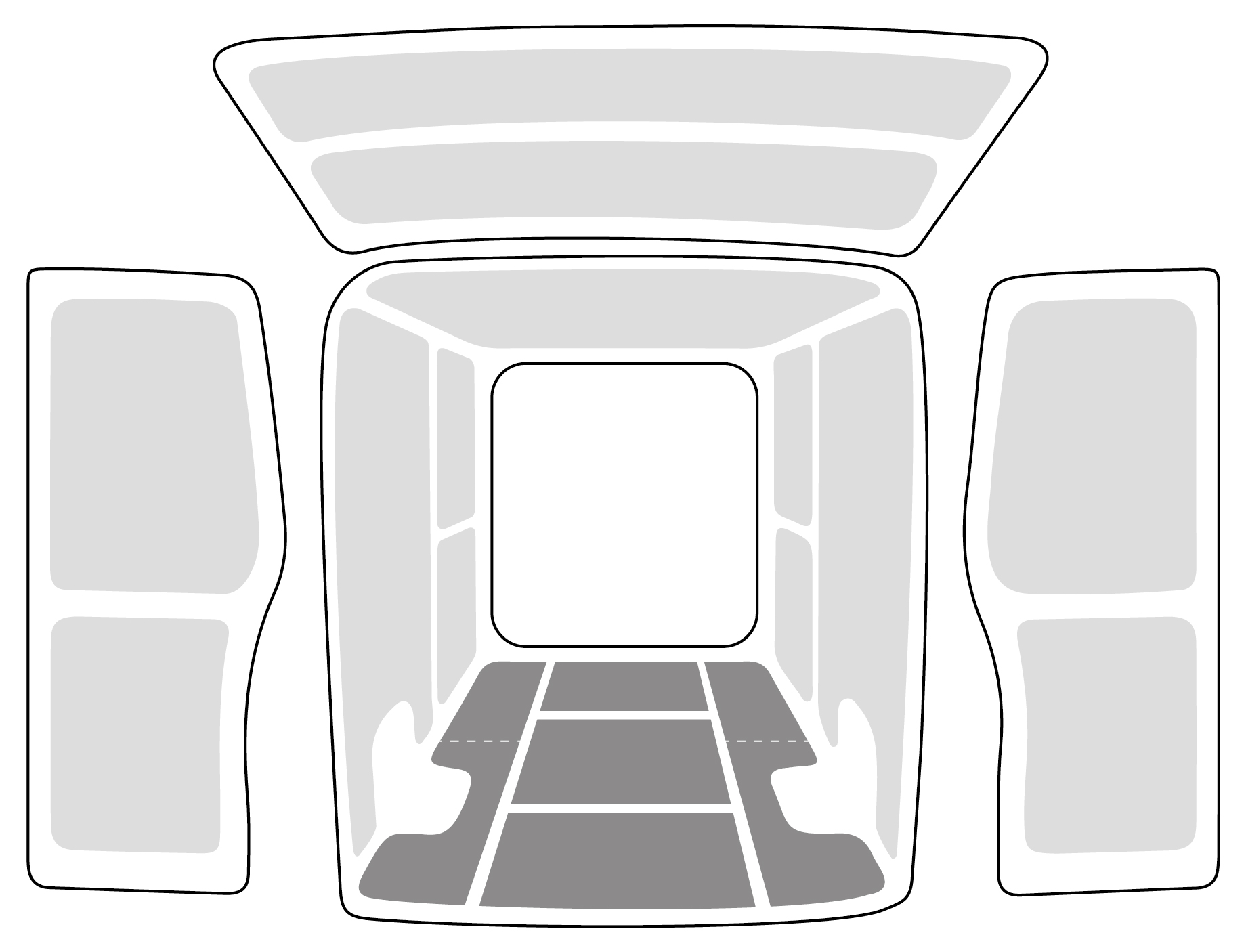 Lightweight and robust van floor with transverse rails for a Iveco Daily with anti-slip aluminum tread plate and cargo rails (longitudinal and transverse) for quick and safe installation of racking systems and other accessories.
