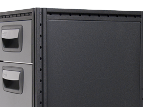 Flush end panel for attaching to modules such as drawer units. The panels are mounted using clips.