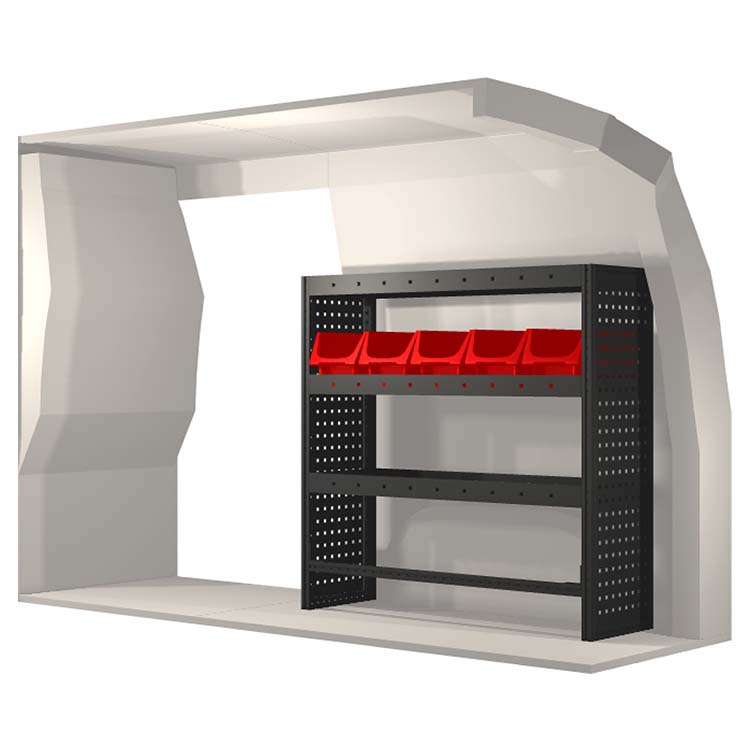 The racking has been specially designed to ensure the optimum fit to the vehicle, as well as the best possible functionality and safety. It has been developed for professional use, is flexible and is intended for service jobs in various types of business. All shelves are equipped with rubber mats, and all drawers with foam plastic liners. Assembly material is included.