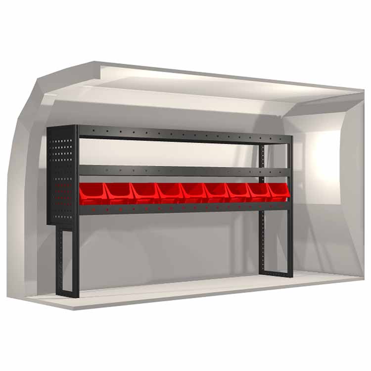 The racking has been specially designed to ensure the optimum fit to the vehicle, as well as the best possible functionality and safety. It has been developed for professional use, is flexible and is intended for service jobs in various types of business. All shelves are equipped with rubber mats, and all drawers with foam plastic liners. Assembly material is included.