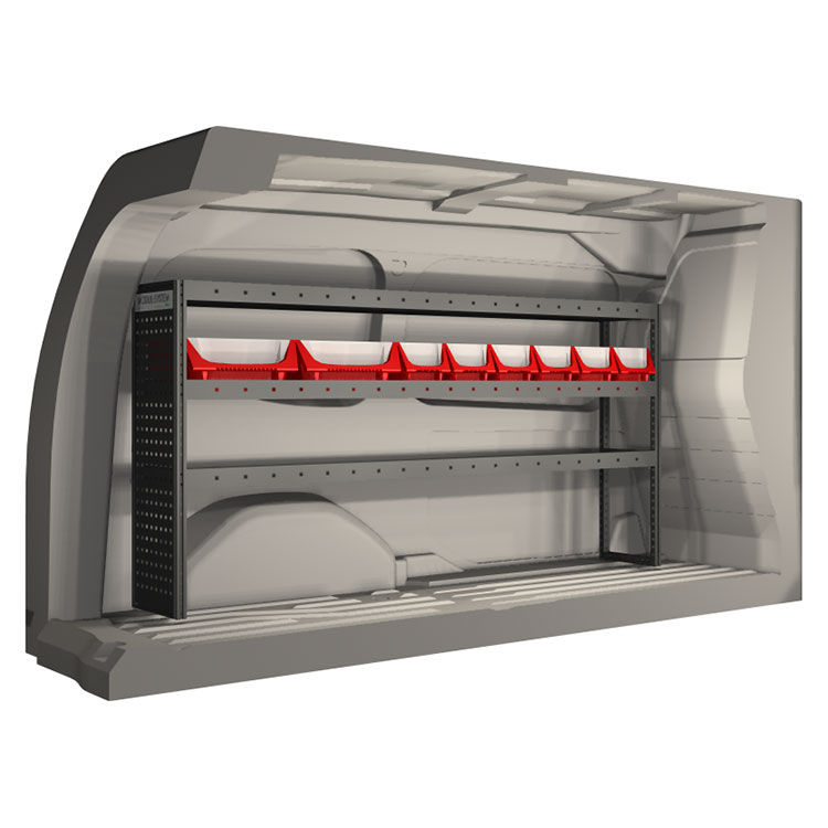 The racking has been specially designed to ensure the optimum fit to the vehicle, as well as the best possible functionality and safety. It has been developed for professional use, is flexible and is intended for service jobs in various types of business. All shelves are equipped with rubber mats, and all drawers with foam plastic liners. Assembly material is included.