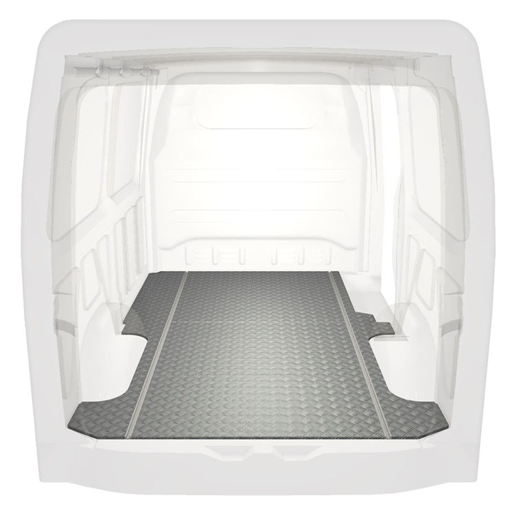 Lehká a robustní standardní podlaha do dodávky Mercedes Sprinter s protiskluzovou hliníkovou deskou a nákladními kolejnicemi (podélnými) pro rychlou a bezpečnou montáž regálových systémů a dalšího příslušenství.