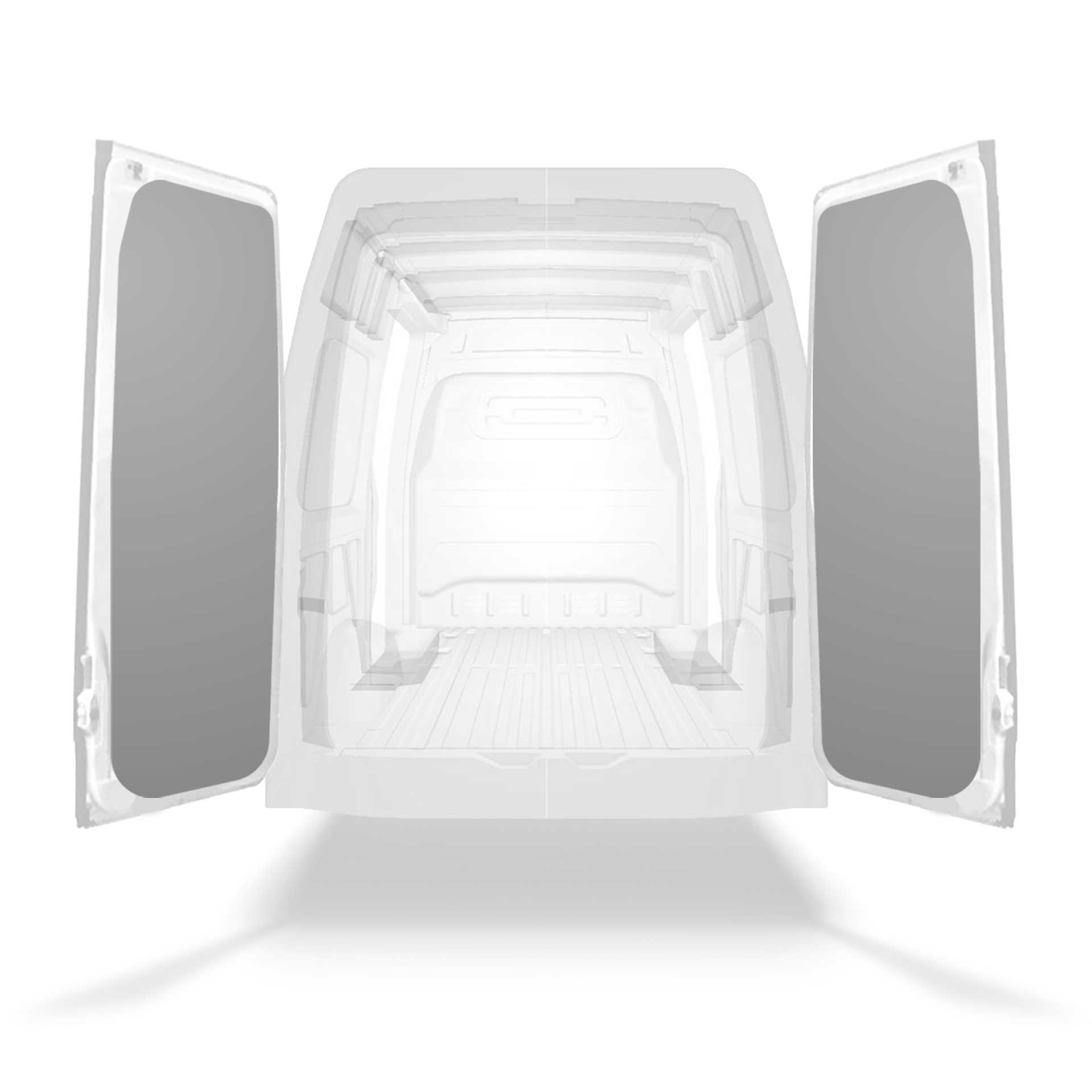 Kompletní obložení zadních dveří dodávek Mercedes Sprinter s dvoukřídlými dveřmi. Obložení dveří vytváří profesionální vzhled uvnitř vozidla, chrání jej a snadno se čistí.