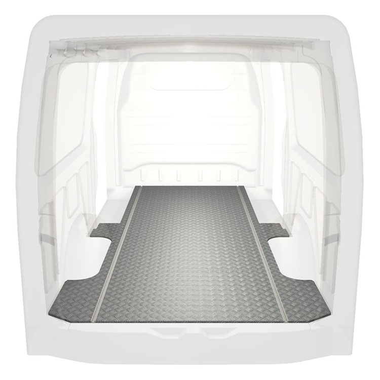 Lehká a robustní extra dlouhá podlaha pro dodávky Mercedes Sprinter s protiskluzovou hliníkovou deskou a nákladními kolejnicemi (podélnými) pro rychlou a bezpečnou montáž regálových systémů a dalšího příslušenství.