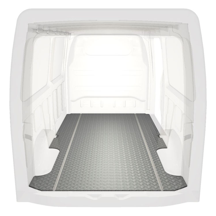 Lehká a robustní extra dlouhá podlaha pro dodávky Mercedes Sprinter s protiskluzovou hliníkovou deskou a nákladními kolejnicemi (podélnými) pro rychlou a bezpečnou montáž regálových systémů a dalšího příslušenství.