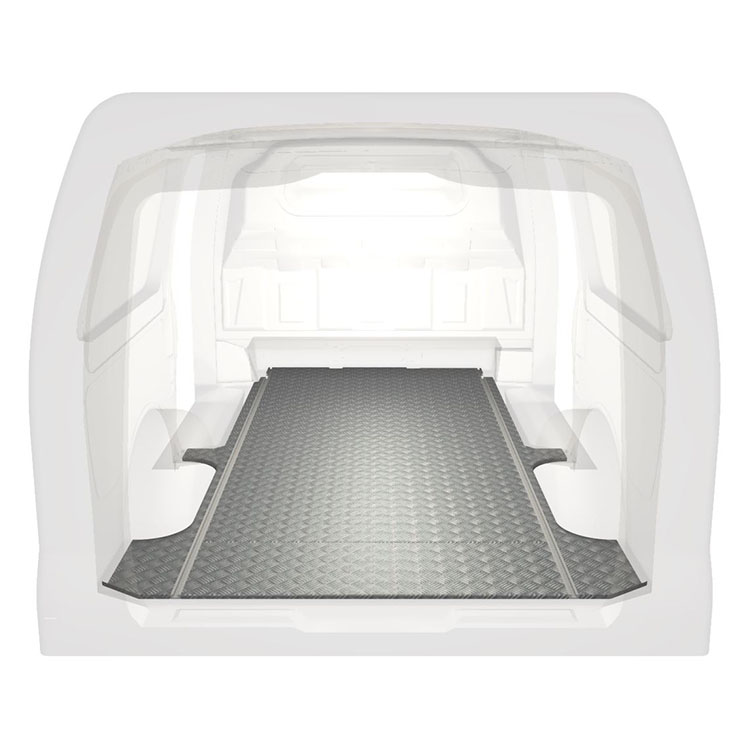 Lehká a robustní extra dlouhá podlaha pro dodávky Mercedes Vito s protiskluzovou hliníkovou deskou a nákladními kolejnicemi (podélnými) pro rychlou a bezpečnou montáž regálových systémů a dalšího příslušenství.