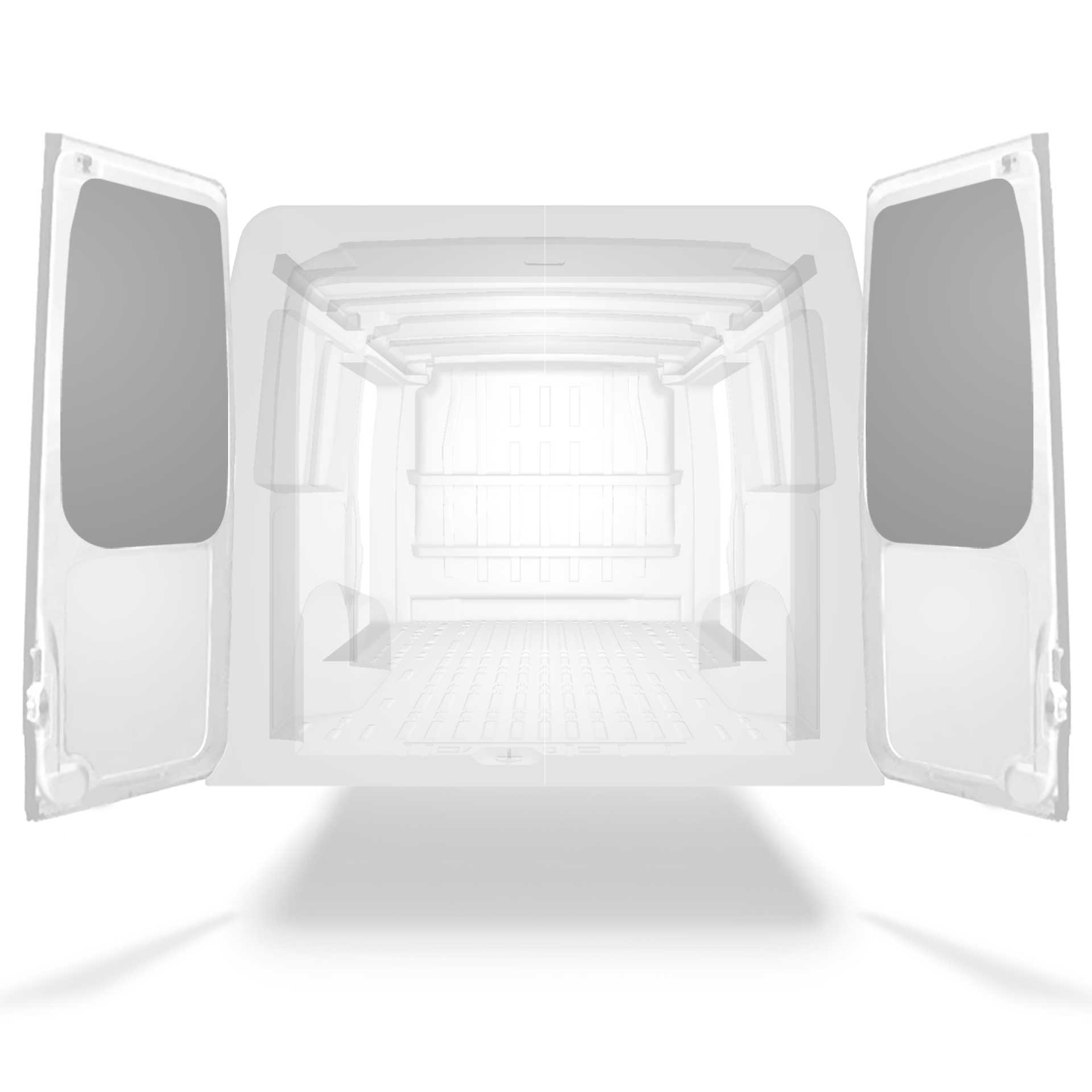 Tato předem nařezaná obložení zadních dveří dodávek jsou navržena tak, aby se vešla do horní části dvoukřídlých dveří vozidla.