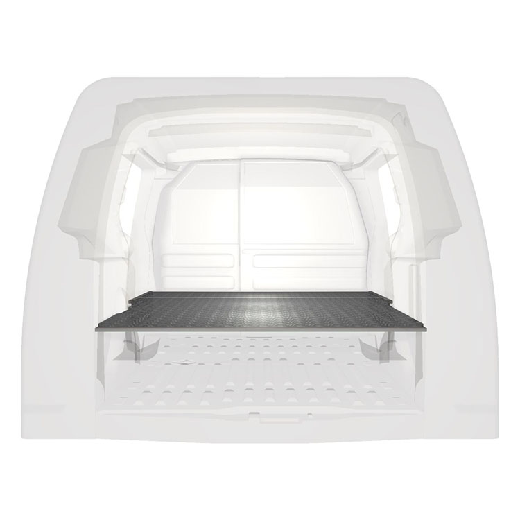 The kit is designed to be fitted on top of a Modul-Floor, utilizing the floor rails for a non-intrusive installation. The double floor is equipped with rails for easy installation of vehicle racking, and edging strips for a nice finish.