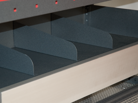 With this divider you can easily separate shelves with hinged fronts into smaller compartments. The dividers are mounted using rivets. Intended for a 324 mm deep and 108 mm high shelf.