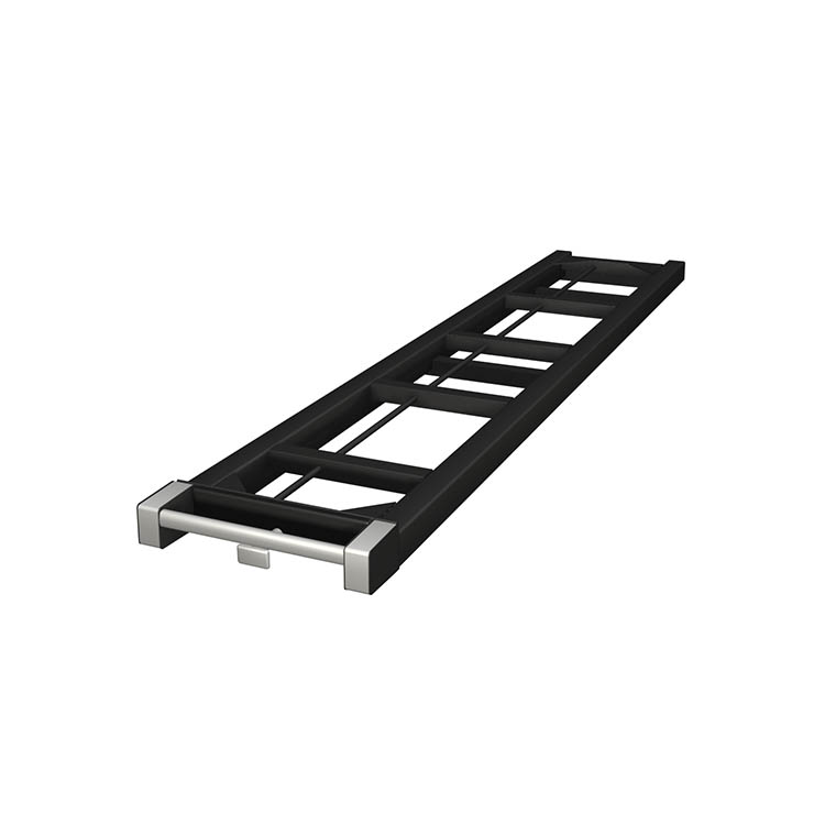 Lightweight and robust base frame made from ultra-high strength steel, with a front in anodized aluminum. A loading platform can be mounted to the base frame for increased functionality.