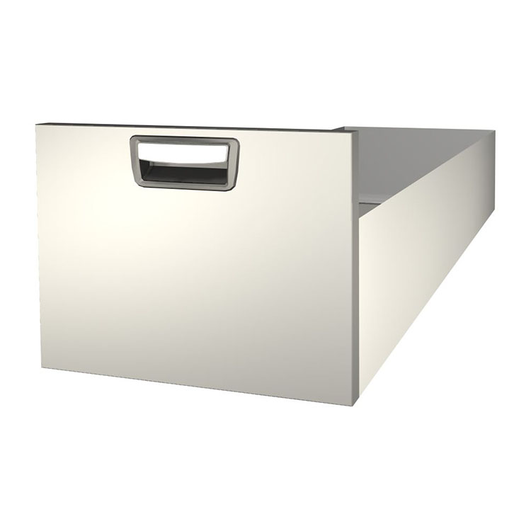 Robustní extra dlouhá zásuvka pro montáž do rámu zásuvkové jednotky. Zásuvka vyrobená z hliníku má standardně kuličková ložiska a s kombinací pevných a pružných ložisek je zásuvka stabilní a snadno ovladatelná.
