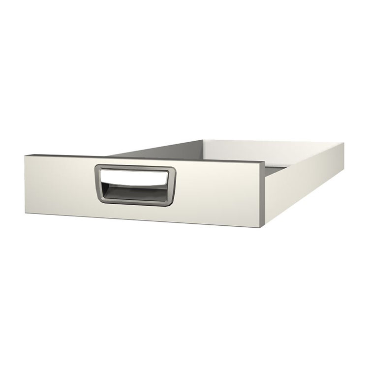Robustní extra dlouhá zásuvka pro montáž do rámu zásuvkové jednotky. Zásuvka vyrobená z hliníku má standardně kuličková ložiska a s kombinací pevných a pružných ložisek je zásuvka stabilní a snadno ovladatelná.