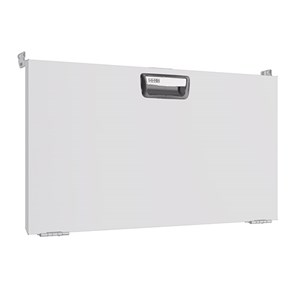 Drop down doors are fitted with gas springs on both sides that ensure smooth opening and closing. The opening angle is 90 degrees. The door pull has a built-in catch that prevents it from opening while the vehicle is in motion. The door is also suitable for wheel arch frames fitted with bench tops. When fitting doors between two shelf end supports, a mounting frame must be used.