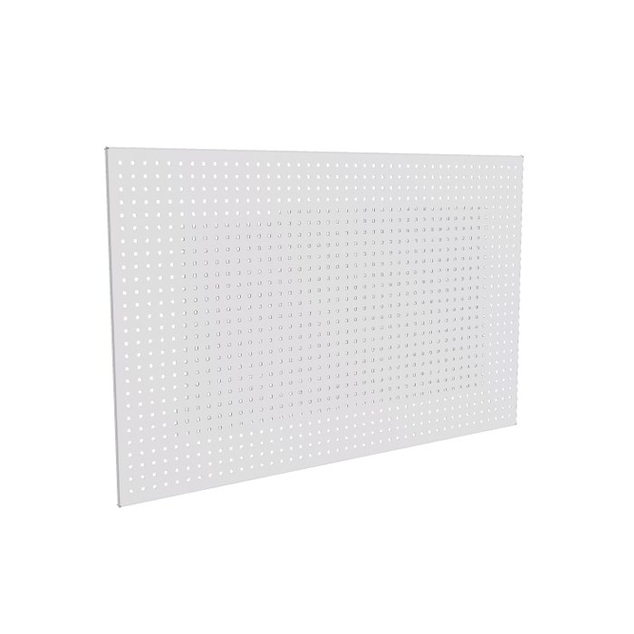 The tool board is designed for mounting on a wall. The metal plate is punched with 9 mm holes at 34 mm pitch spacing. With the addition of tool hooks it provides a flexible system for tool storage, etc.