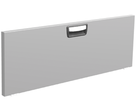 Drop down doors are fitted with gas springs on both sides that ensure smooth opening and closing. The opening angle is 90 degrees. The door pull has a built-in catch that prevents it from opening while the vehicle is in motion. The door is also suitable for wheel arch frames fitted with bench tops. When fitting doors between two shelf end supports, a mounting frame must be used.