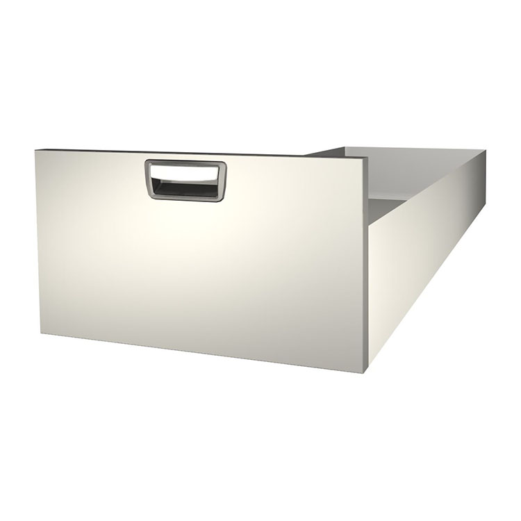 Robustní extra dlouhá zásuvka pro montáž do rámu zásuvkové jednotky. Zásuvka vyrobená z hliníku má standardně kuličková ložiska a s kombinací pevných a pružných ložisek je zásuvka stabilní a snadno ovladatelná.