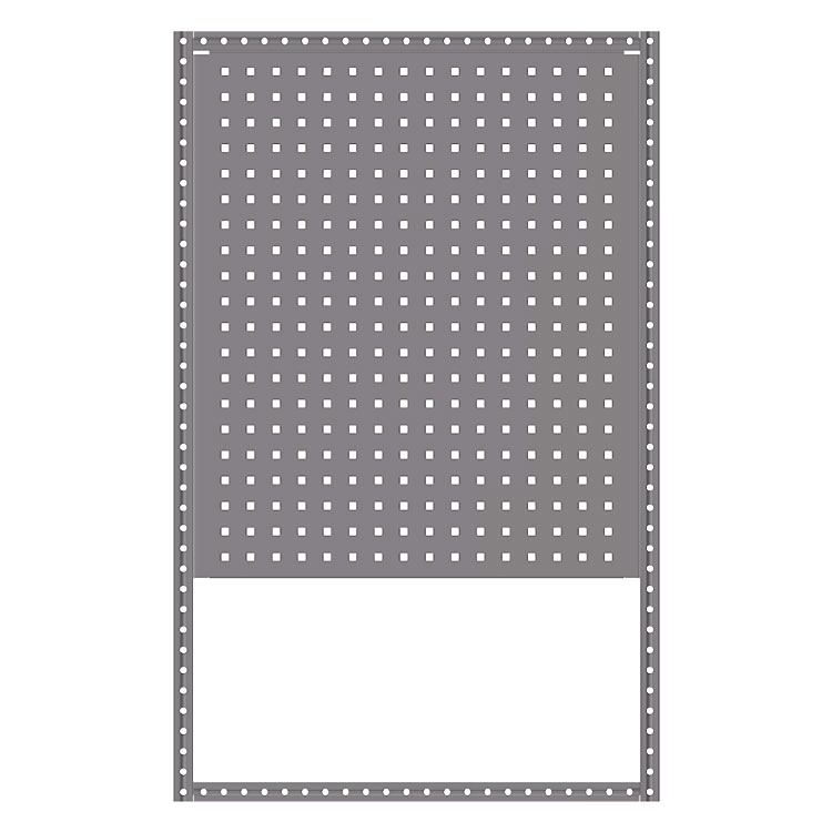 Shelf end support with a shortened tool board to accommodate, for example, a slide-out vice holder. The T-tracks integrated in the profiles are used for securing cargo, attaching accessories and for versatile surface mounting.