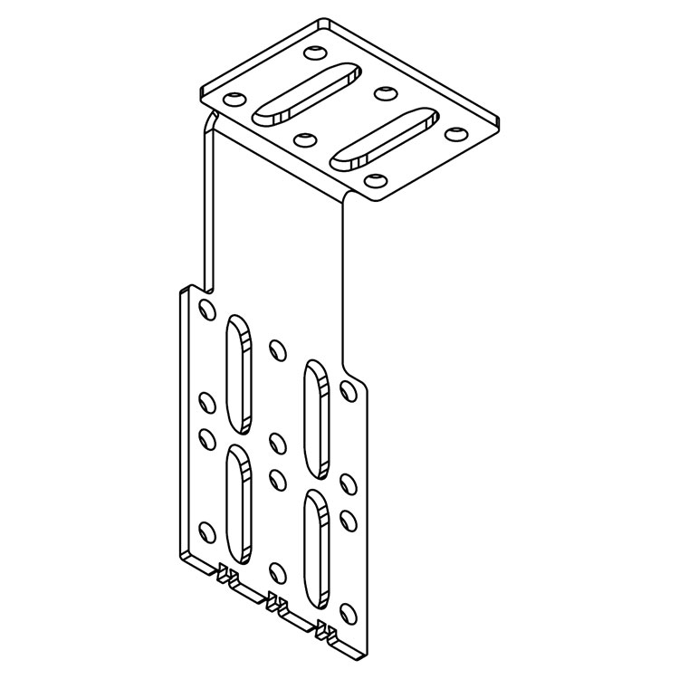 The universal mounting bracket is used for securing drawer units, shelves, lockers, etc., to the vehicle wall. Designed to suit most installations.