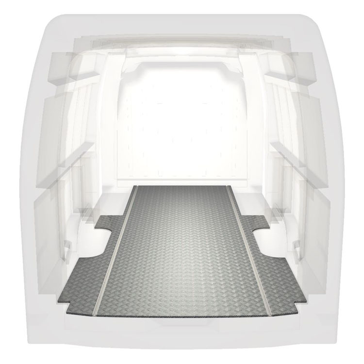 Lehká a robustní extra dlouhá podlaha pro dodávky Renault Master / Opel Movano / Nissan NV400 s protiskluzovou hliníkovou deskou a nákladními kolejnicemi (podélnými) pro rychlou a bezpečnou montáž regálových systémů a dalšího příslušenství.
