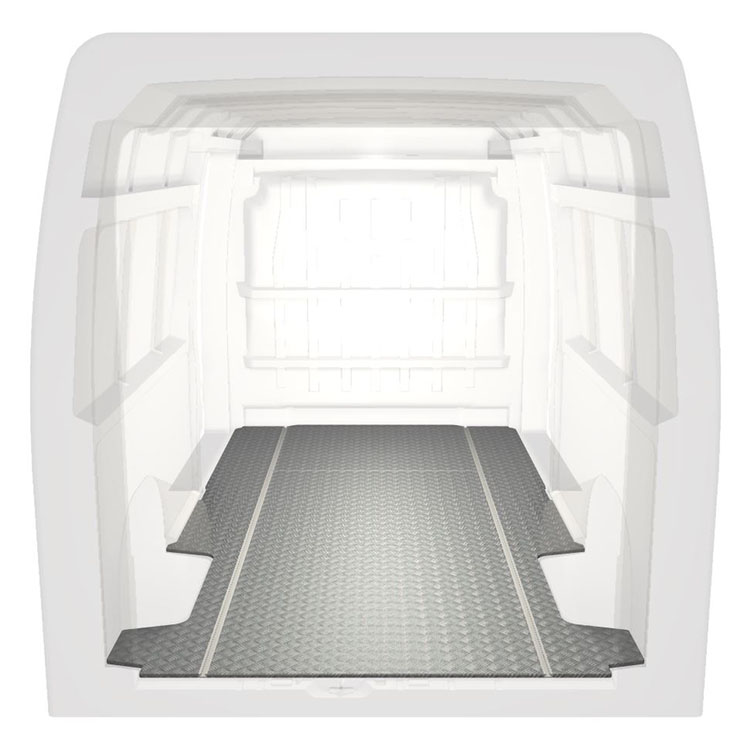 Lehká a robustní extra dlouhá podlaha pro dodávky Citroën Jumper / Peugeot Boxer / Fiat Ducato s protiskluzovou hliníkovou deskou a nákladními kolejnicemi (podélnými) pro rychlou a bezpečnou montáž regálových systémů a dalšího příslušenství.